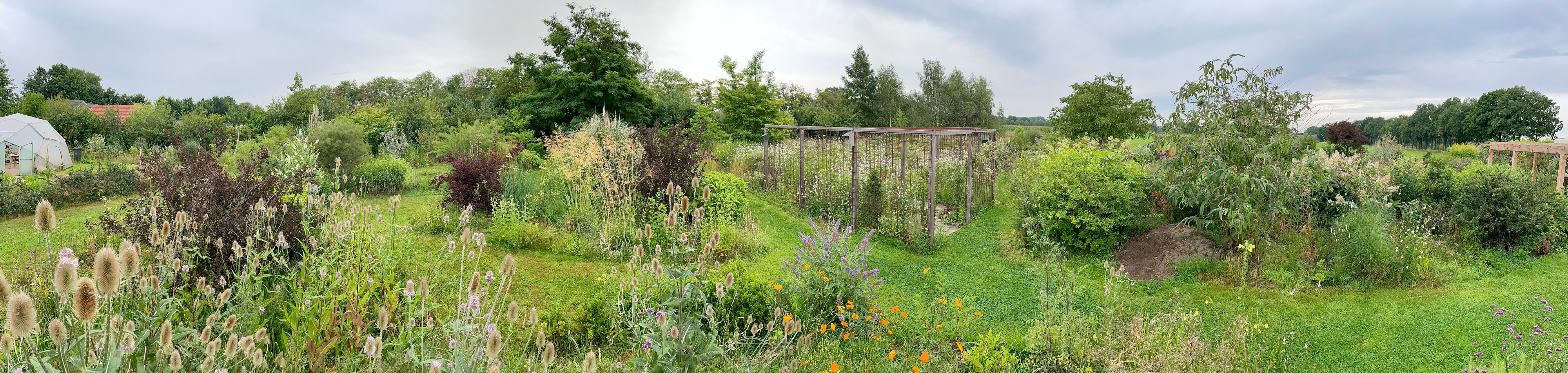 Dit is een tuin waarin wordt geleefd, gespeeld, gerend (door kinderen en honden) en in bomen geklommen.