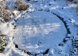 5. De Vijverzone: Bij het uitgraven is met de grond een heuveltje langszij de vijver gemaakt. Daarop staan droogteminnende planten als Euphorbia myrsinites, Sedum, Phlomis, Santolina, Nepeta ‘Walkers Low’ en Anaphalis. In de naturalistisch ogende folievijver staat bijvoorbeeld Eniophorum, Juncus, Alisma lanceolatum, Potamogetum, Pontederia enz. Rondom staan Rheum, koningsvaren Osmunda regalis en Geum. De vijverzone wordt aan de zuidkant begrenst door een rij wilgen; een drietal kronkelwilgen (opgekweekt van paastakken), de Salix purpurea ‘Nacy Saunders’ en de Salix exigua. Aan de oostkant loopt het over in het Berkenbosje met als startpunt de prachtige donkerbladige berk, Betula ‘Crimson Frost’.