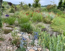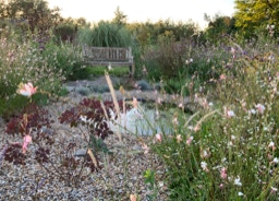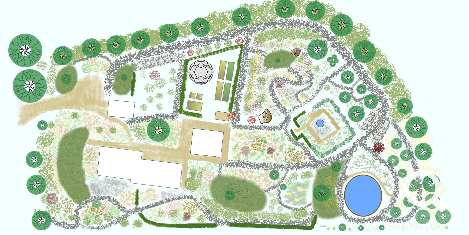 7. De Geheime Tuin: Deze tuin is een ontwerp van Heleen, geïnspireerd op het boek De Geheime Tuin van Frances Hodgson Burnett. Oorspronkelijk zou deze omzoomd worden door een menshoge taxushaag maar door engerlingen en hoge waterstand is die overleden en vervangen door een gemengde haag. Doordat ook veel planten het loodje legden, heeft Heleen het hele ontwerp drastisch omgegooid. Ze heeft in het midden een ruime grindtuin gemaakt met daarin een ronde vijver. Het grind zal hopelijk de meikevers ervan weerhouden daar hun eitjes te leggen en het is ook meteen klimaatbestendig. Uit het eerdere Grindborder experiment is gebleken dat dit uitermate droogtebestendig is en veel planten het hier uitstekend doen. Dus we hopen dat hier ook te gaan zien.
