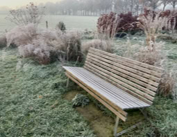6. Het Berkenbosje: We zijn al in 2014 begonnen met het aanplanten van mooie witte berken, Betula utilis ‘Doorenbos’ achter de vijver. We zochten naar het beeld van berken in hoog wild gras. Dit bleek niet zo makkelijk te realiseren want berken blijken hier notoir lastig aan te planten. Er zijn er dan ook een aantal overleden door engerlingen en droogte. We hebben deze vervangen door kleinere exemplaren en andere soorten en het begint nu ergens op te lijken. Er staat een middenberm van Deschampsia cespiosa, die zich verder mag uitzaaien, aangevuld met Verbena bonariensis. Aan de rand staan een paar Rhododendron luteum, gele Azalea, die door de natte laatste winters ook goed aanslaan. Grenzend aan de vijverzone staat nog de donkerbladige berk Betula ‘Crimson Frost’, wat de twee gebieden mooi verbindt.