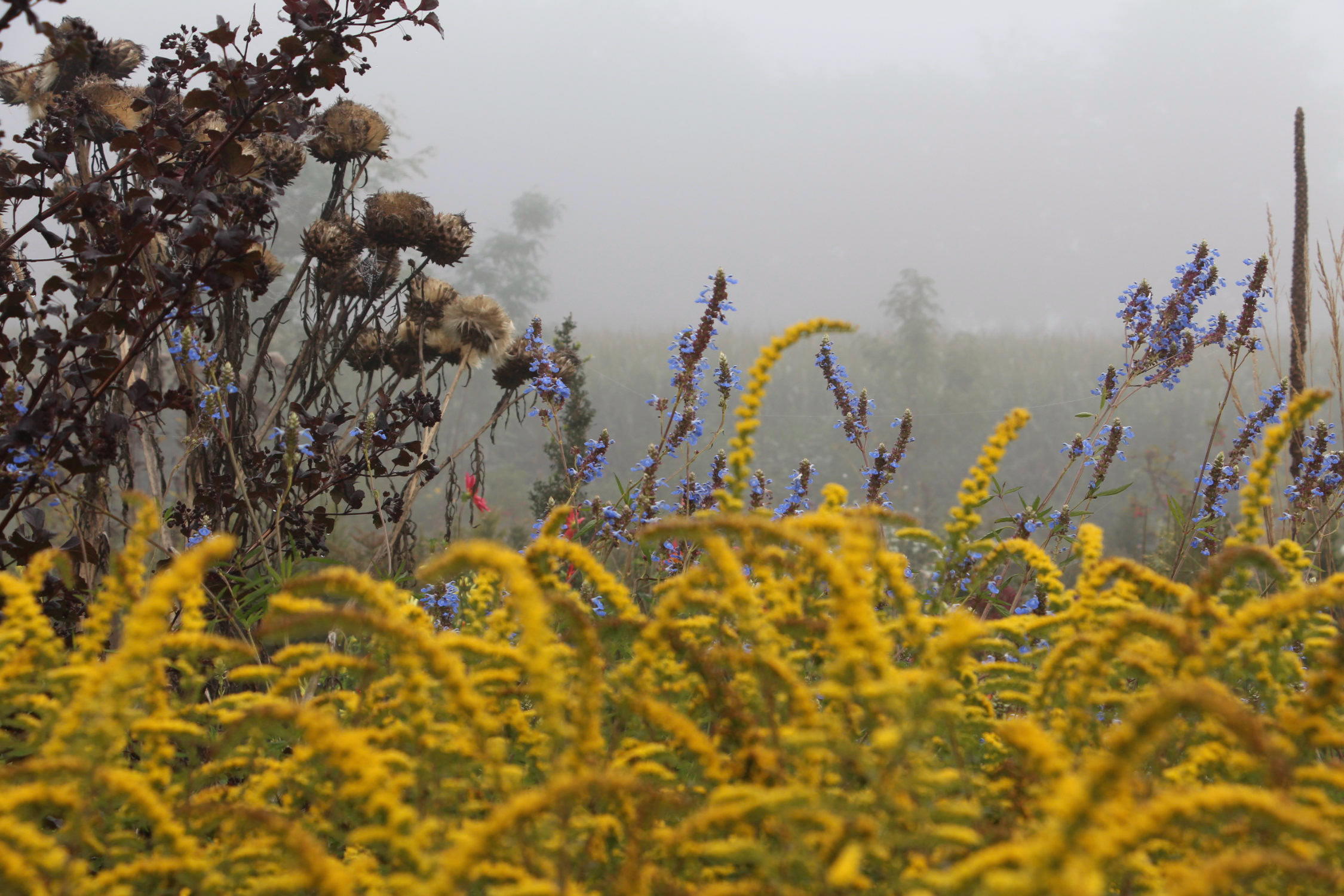 8. De Tweemetertuin: Samen met De Geheime Tuin misschien wel het meest conceptuele tuindeel. Een ontwerp van eddie d en hij begon de aanleg in 2017. De Twmtrtn is eigenlijk een dwaaltuin om je klein in te voelen. De meeste planten en grassen groeien hier in één seizoen tot ongeveer twee meter hoog. Ook de struiken zijn op die uiteindelijke hoogte geselecteerd. Een van de uitgangspunten hier is om de dynamiek van de verschillende seizoenen te gebruiken om tot een steeds veranderend beeld te komen. In het hoge seizoen loop je tussen een haag van planten waar je niet overheen kunt kijken, soms schemert er nog een struik of plant tussendoor. In de herfst zullen sommigen al doorzichter worden. In de winter sterft veel af om te laten zien wat er achter staat. Langzaam wordt de tuin dan transparanter en kun je de delen meer overzien. In het voorjaar begint de groei weer en wordt het weer ondoorzichtiger. Natuurlijk houden de planten zich niet allemaal aan deze afspraak en eddie moet ze dan ook regelmatig vermanend toespreken.